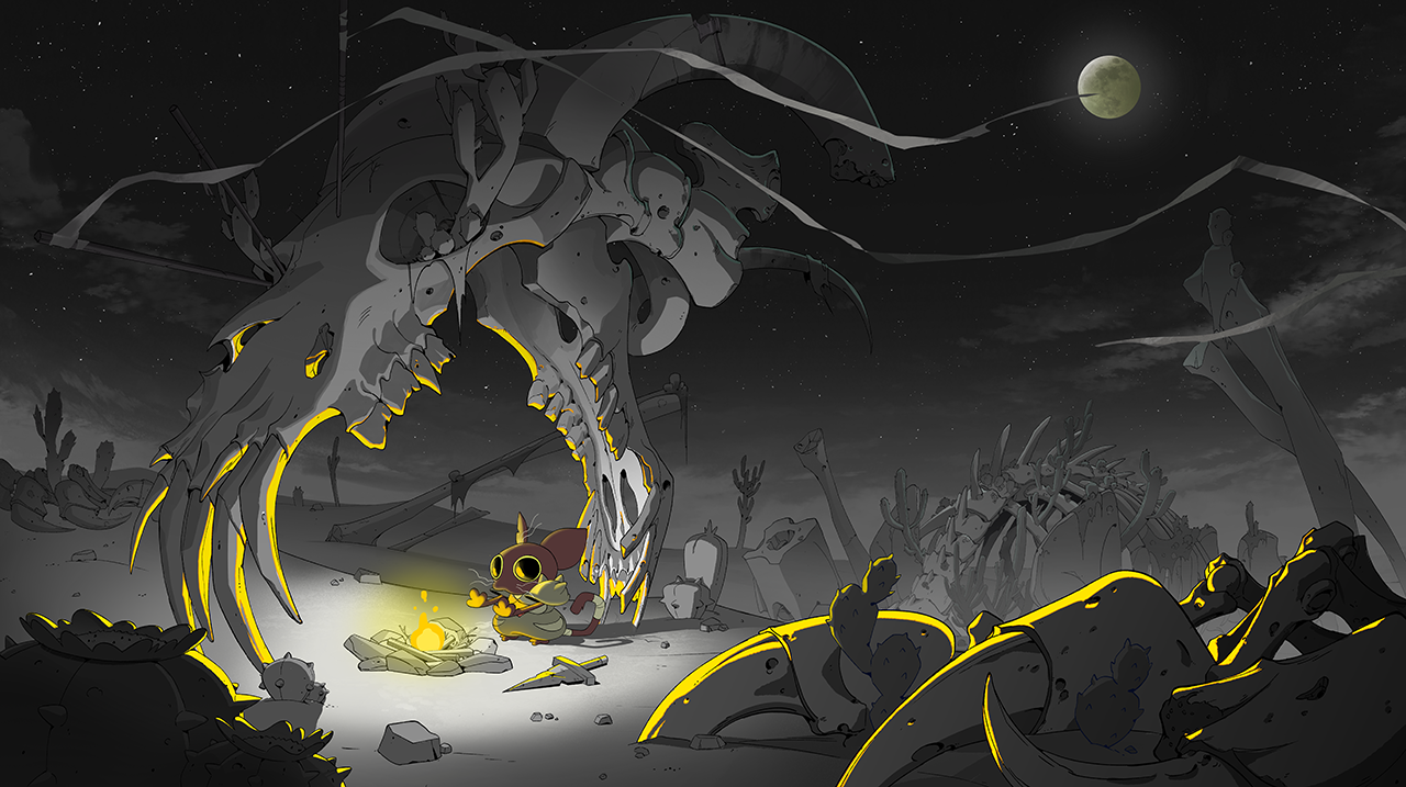 Pure line art to show how it was set up for animation parallaxing.